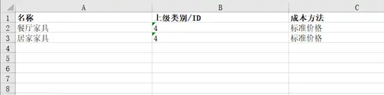 - 下载 Excel 文件,编辑新增分类、填写 parent_id(上级分类)等信息并保存。