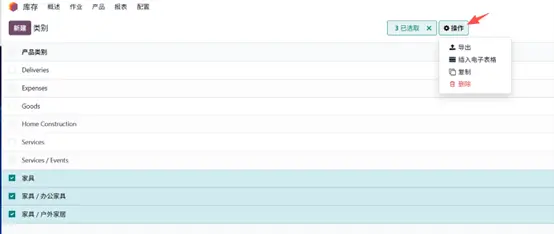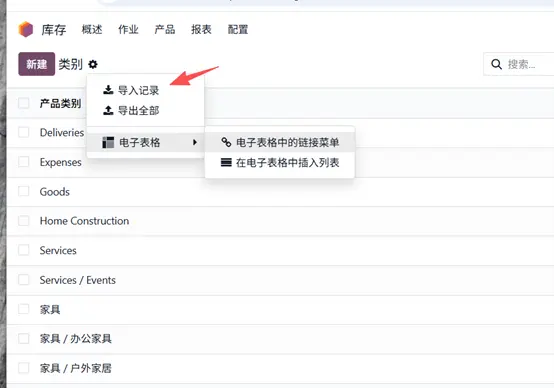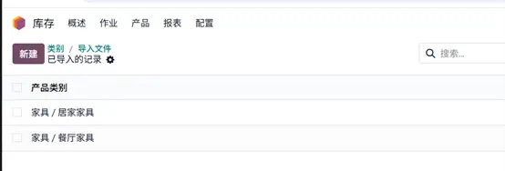 - 导入完成后,即可在 Odoo 中看到新增的产品分类。