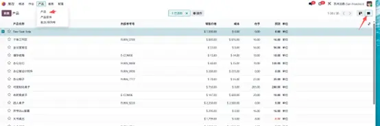 - 打开【库存】模块 → 产品 → 产品。