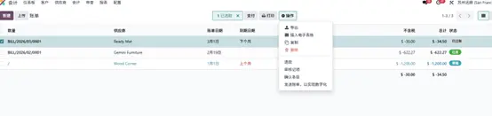 - 打开【会计】模块 → 供应商 → 账单。