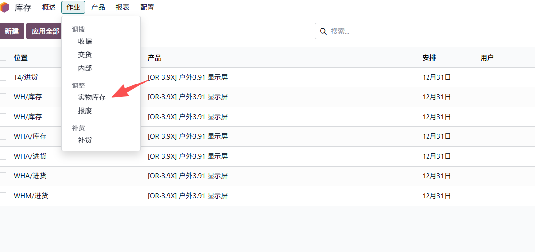 - 创建新的库存调整单