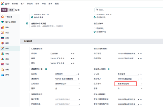 启用该设置后,递延分录会在账单确认时自动生成。