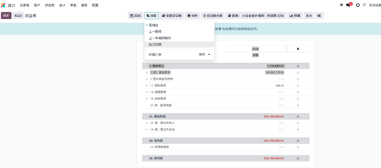 下一个图标为选择会计报表(Choose the Accounting report),点击后可对利润表进行自定义设置。