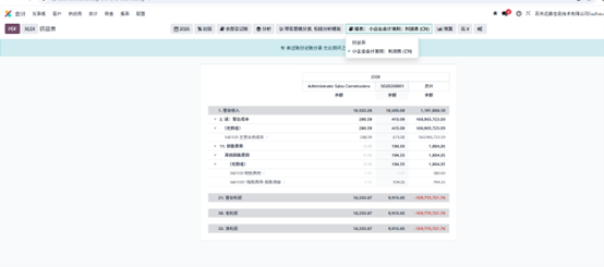 报表筛选器包含两个选项:损益表和小企业会计准则利润表。