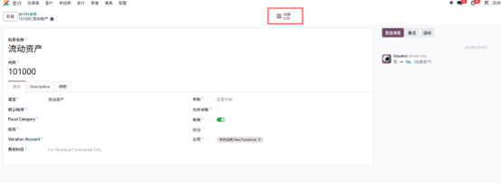 Odoo还支持用户通过【描述】标签页为科目补充更多说明信息,可记录关于该科目的补充备注或解释说明。这一功能对于明确科目核算用途、为财务团队提供内部操作指引尤为实用。此外,Odoo 19新增了科目映射功能,对于在同一系统中运营多家子公司、管理多个主体的企业而言,该功能具备极高的实用价值。