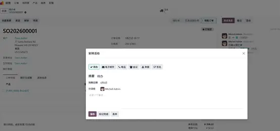 Odoo中的活动,是具备以下属性的待办事项: