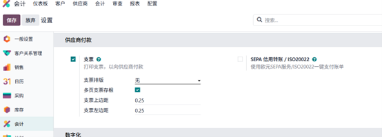 - 在对外付款标签页的支票打印板块,完成进阶配置: