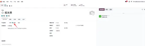 通常需创建一个服务类产品,用于记录采购相关的附加费用。