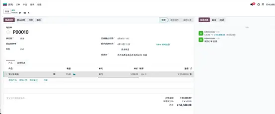 创建采购询价单(RFQ),采购 10 台笔记本,单价 50,00 元。