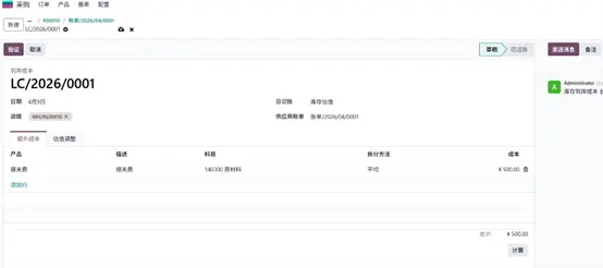 详解 Odoo 19 到岸成本操作:从启用至落地,支撑产品合理定价