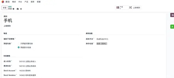 首先选择或创建产品类别,设置成本计价方式为 FIFO,并启用自动库存估值