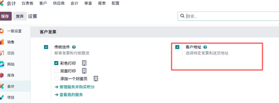 2. 在 **客户发票** 区域,启用 **客户地址**
