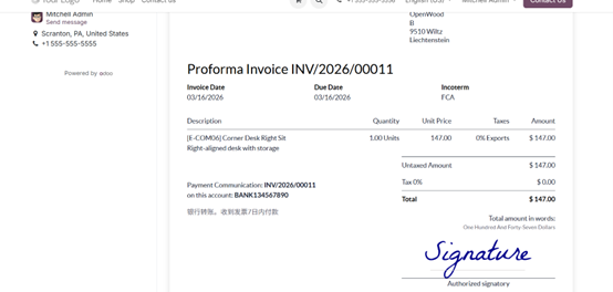 设置后,该人员的**姓名 + 电子签名**(如已上传)会**自动出现在所有客户发票上**,确保每张发票都有正式、可追溯的授权,适合严格审批流程、税务合规与审计要求。