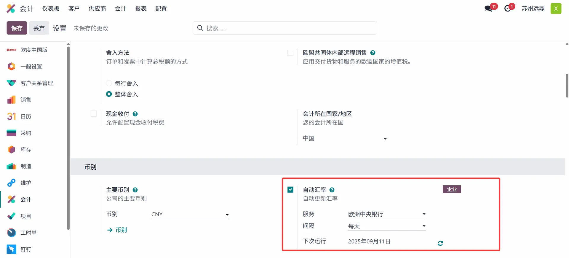 - 操作路径:配置(Configuration)> 设置(Settings)> 币别(Currencies)> 自动汇率(Automatic Rates)