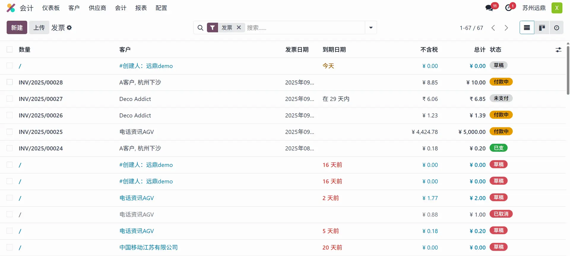 - 操作路径:客户(Customers)> 发票(Invoices)> 新建(New)