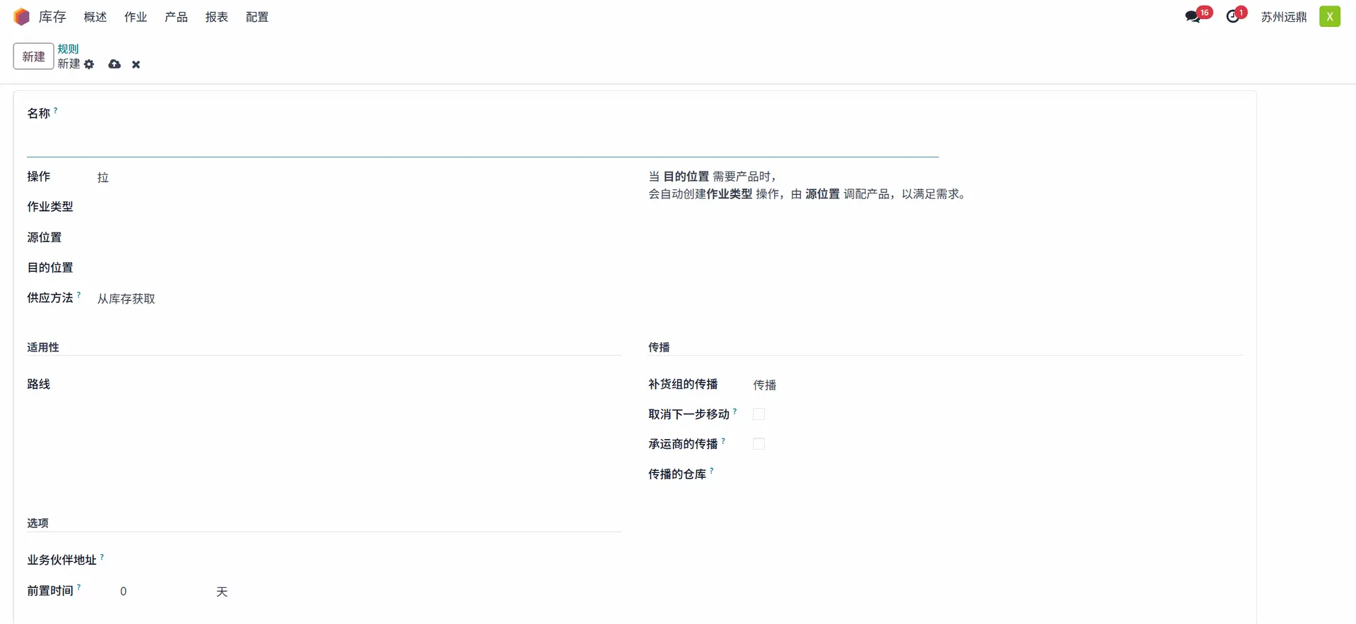 • 传播的仓库(Warehouse to Propagate):可指定与 “规则所属仓库” 不同的仓库 —— 该仓库将用于传播规则生成的移动或采购需求。
