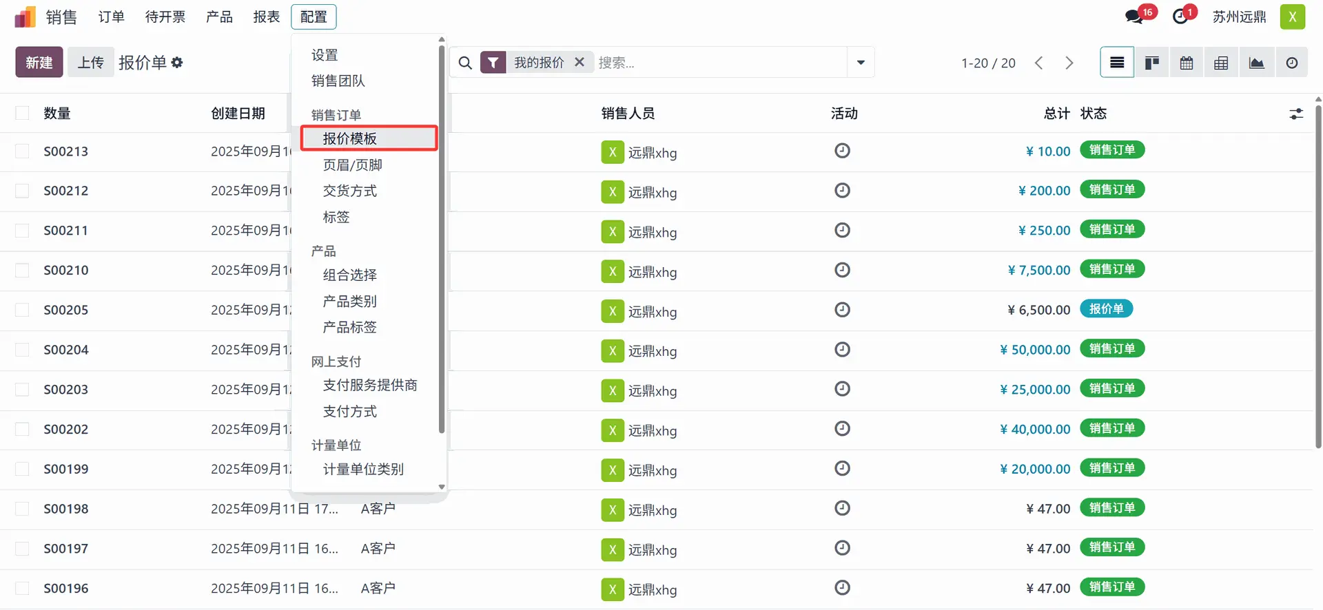 操作路径: 配置 > 报价模板