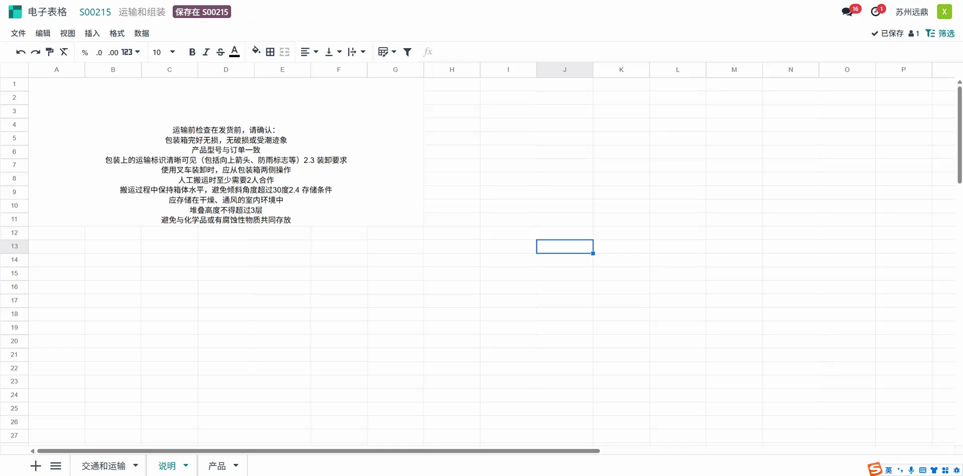 运输和组装成本说明也添加在此工作表中。用户可以从此处更新说明。