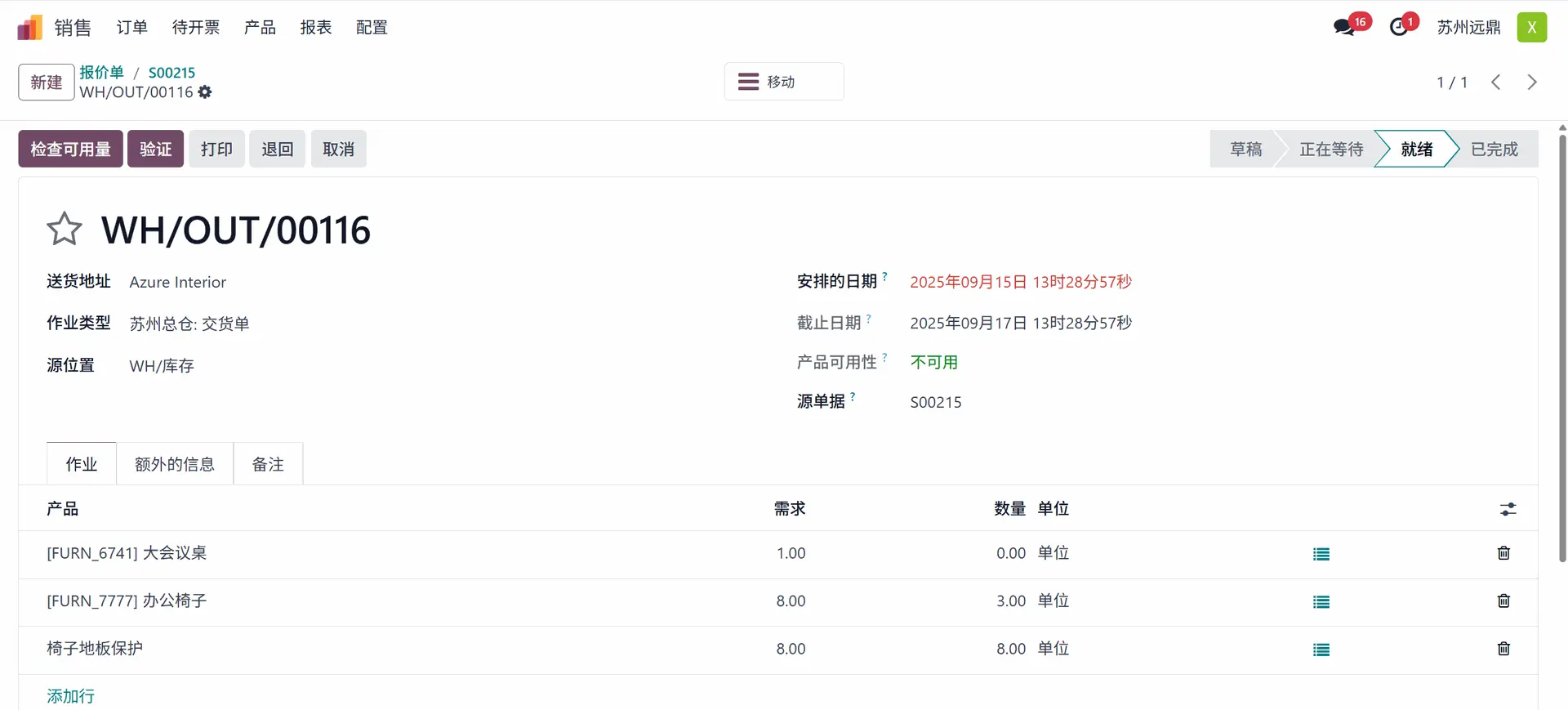 要完成订单,用户需要先确认报价。获得客户确认后,报价将变为销售订单。然后要完成交付,请从“交货”中单击“验证”按钮。