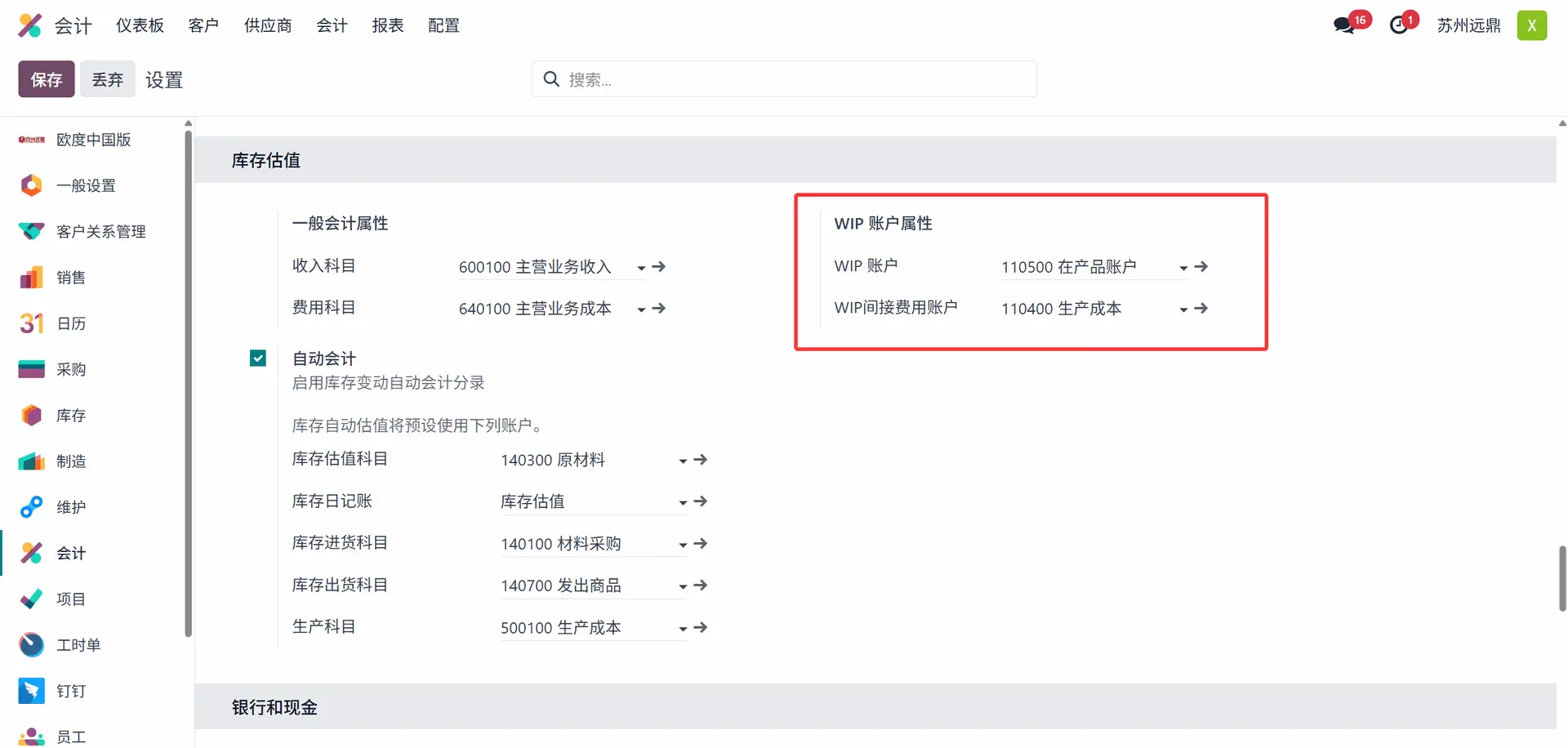 在会计核算中,在产品(Work-in-Progress, WIP)账户 对于精准监控未完工项目或生产流程至关重要。它们通过提供部分完成的物品或服务的价值洞察,来保证准确的财务报告。Odoo 18 中的 WIP 账户有助于追踪持续成本(如人工和材料),而无需过早确认收入。这一功能能帮助企业制定合理的财务决策,并始终遵守会计准则。此外,通过将进行中的工作与已完成的活动分开,WIP 账户有助于改进项目成本管理和盈利能力分析。