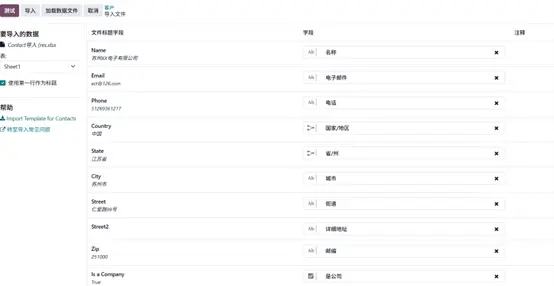 在 Odoo 中,客户和供应商都统一在联系人模型管理,导入流程完全一致,仅在销售/采购业务中用途不同。
