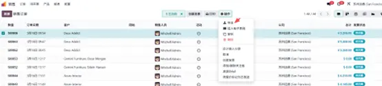 - 打开【销售】模块,任选一条销售订单 → 操作 → 导出。