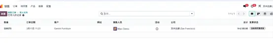 - 仅安装销售模块:销售 → 订单 → 客户