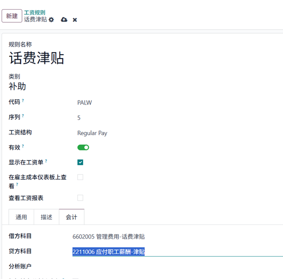 接下来,我们需要在薪资规则中配置借方科目与贷方科目字段,确保薪资处理与会计集成过程中凭证准确生成。