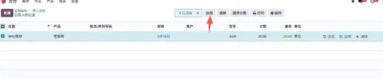 横向滑动找到 「应用(Apply)」 按钮,将盘点数量计入库存。