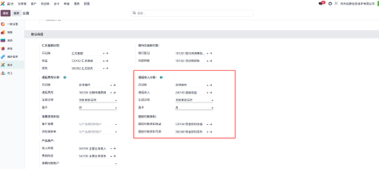 财务设置下设有默认科目区域,该区域展示企业所有默认会计科目,下图即为递延收入相关分录的展示界面。