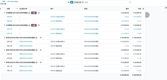 客户AMC购买了订阅服务产品,服务期间为 2026 年 1 月 1 日至 2026 年 3 月 31 日。确认该发票后查看相关分录。