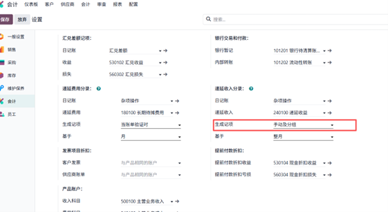 1. 进入财务设置,在递延分录设置中,将生成分录方式改为「手动并分组」。