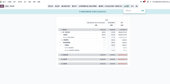 1. 收入(Income):指企业主营业务(如销售商品、提供服务)产生的总收益。Odoo 19 中,收银台交易、销售订单、发票等会自动记录该数据,这些交易将入账至指定收入科目,最终根据会计与销售模块的配置汇总展示在利润表中。