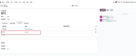 - 在付款方式列表中,添加支票作为可用付款方式,添加后,该日记账创建对外付款时,支票将作为可选付款方式展示;