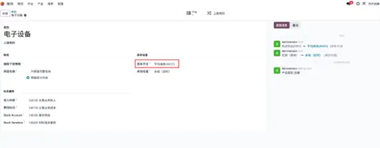 由于采用平均成本法,Odoo 将自动重新计算产品平均成本(含到岸成本):