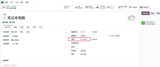以笔记本电脑为例,初始未设置成本。