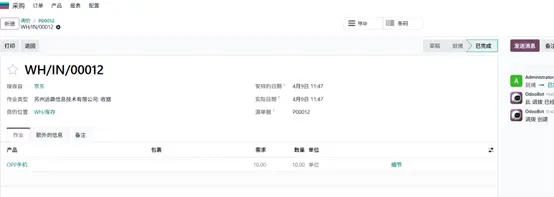 将询价单确认为采购订单,然后验证入库,将产品录入库存。
