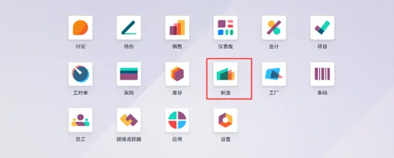 首先,在 Odoo 19 主界面中选择 生产(Manufacturing) 模块。