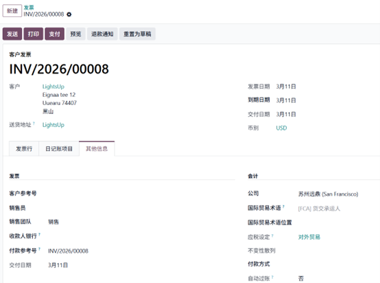 创建/编辑发票时,在 **其他信息** 标签页可看到: