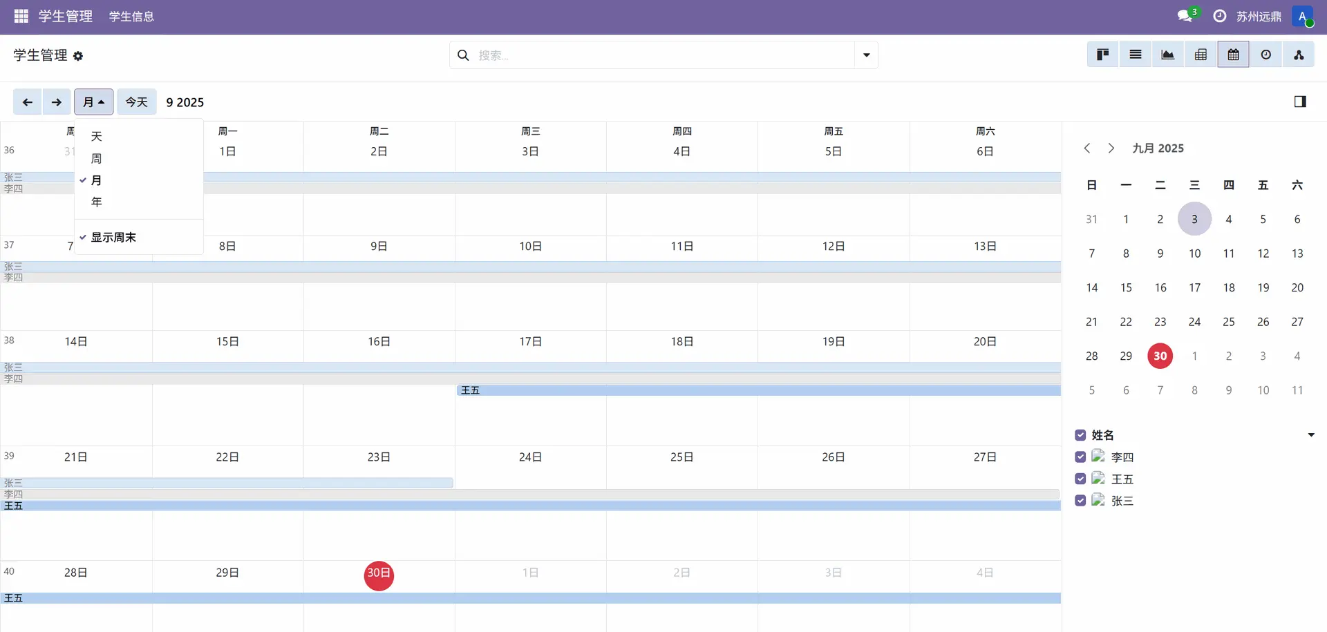 在 Odoo 19 中,日历视图是管理和可视化基于时间数据的强大界面,常用于约会、截止日期、任务、会议等日程安排场景。它提供了直观的图形化布局,可按日、周、月展示记录,在项目、销售、CRM 等模块中尤为实用。其核心功能包括灵活的日程安排、高效的资源管理工具、与其他 Odoo 应用的集成能力、丰富的自定义选项以及移动设备访问支持。无论是销售团队、项目经理还是资源协调员,Odoo 19 的日历视图都能提升日程安排效率,助力高效时间管理,增强组织整体生产力。