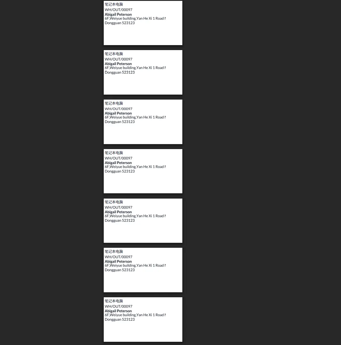 库存接收报表上会出现另一个名为“打印标签”的按钮,可以从此处轻松打印订单标签,标签如下所示。