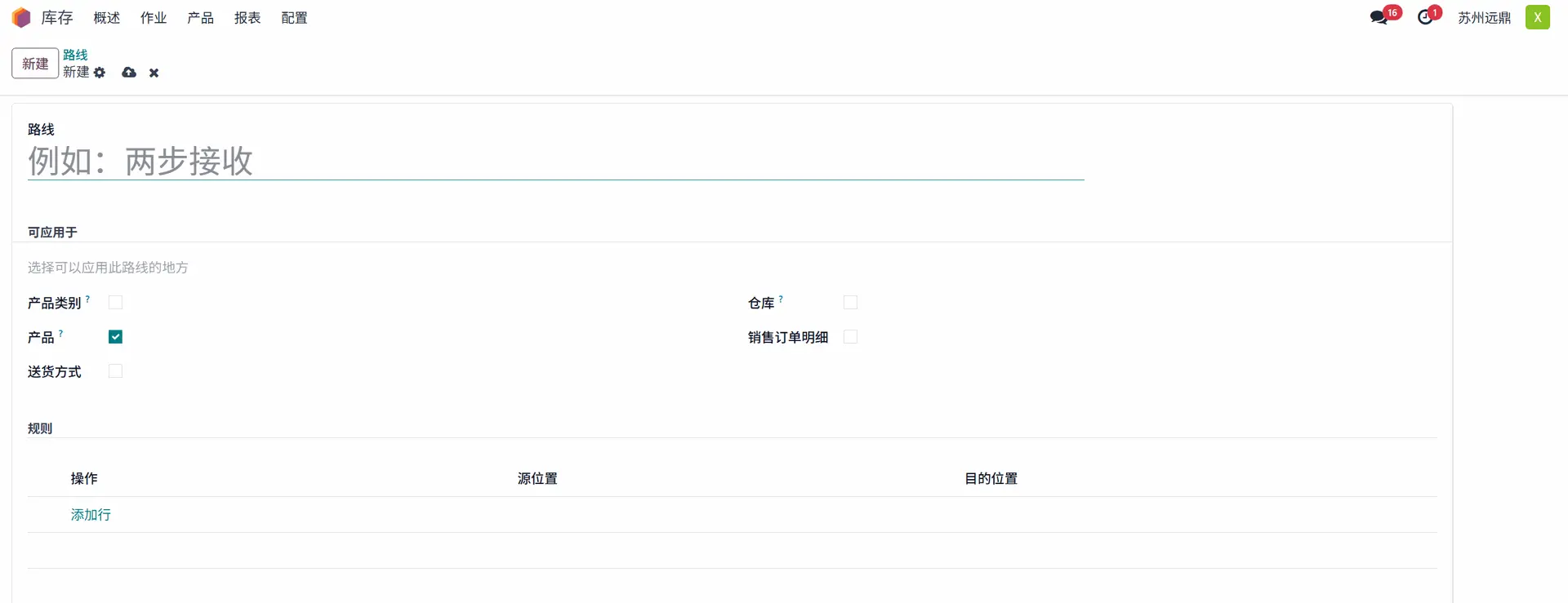 该字段中可选择的路线类型,取决于你在 Odoo 数据库中安装的模块 —— 例如,若安装了采购模块,可选择 “采购路线”;安装了制造模块,可选择 “生产路线”;还可选择 “按需补货路线” 等。