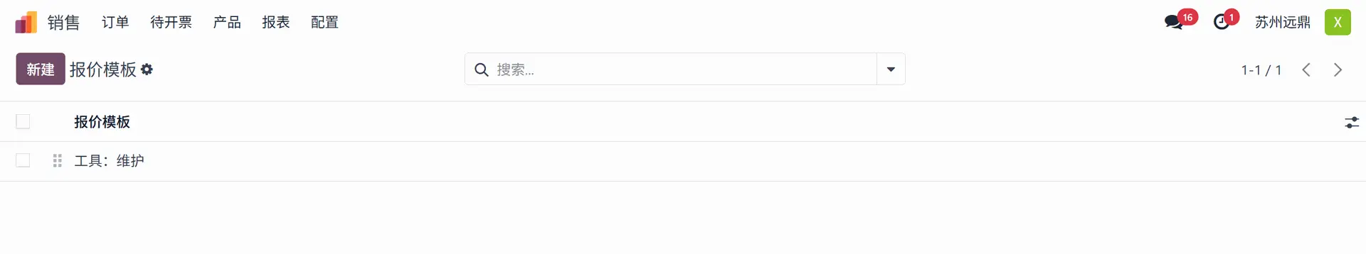 那里会显示已创建的报价模板列表。可以看到模板名称和公司名称。